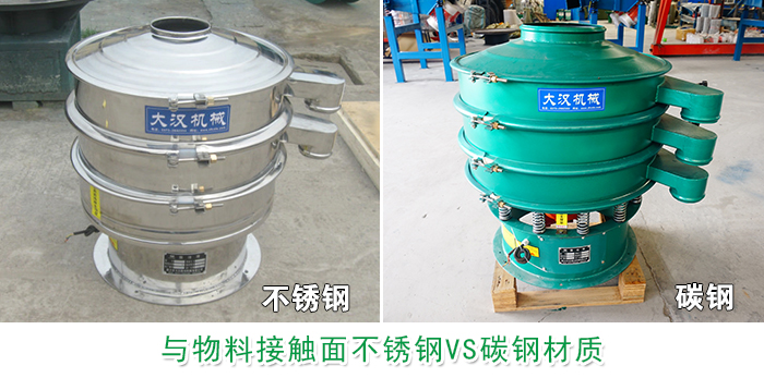 不銹鋼材質(zhì)具有良好的耐腐蝕性能和防不銹性,外表相對美觀且不必經(jīng)過鍍色等表面處理,適合大部分篩分物料接觸面要求較高的物料。